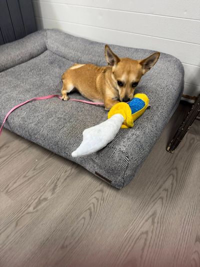 We think she would do best in a home with another dog that would accept her as a friend.
